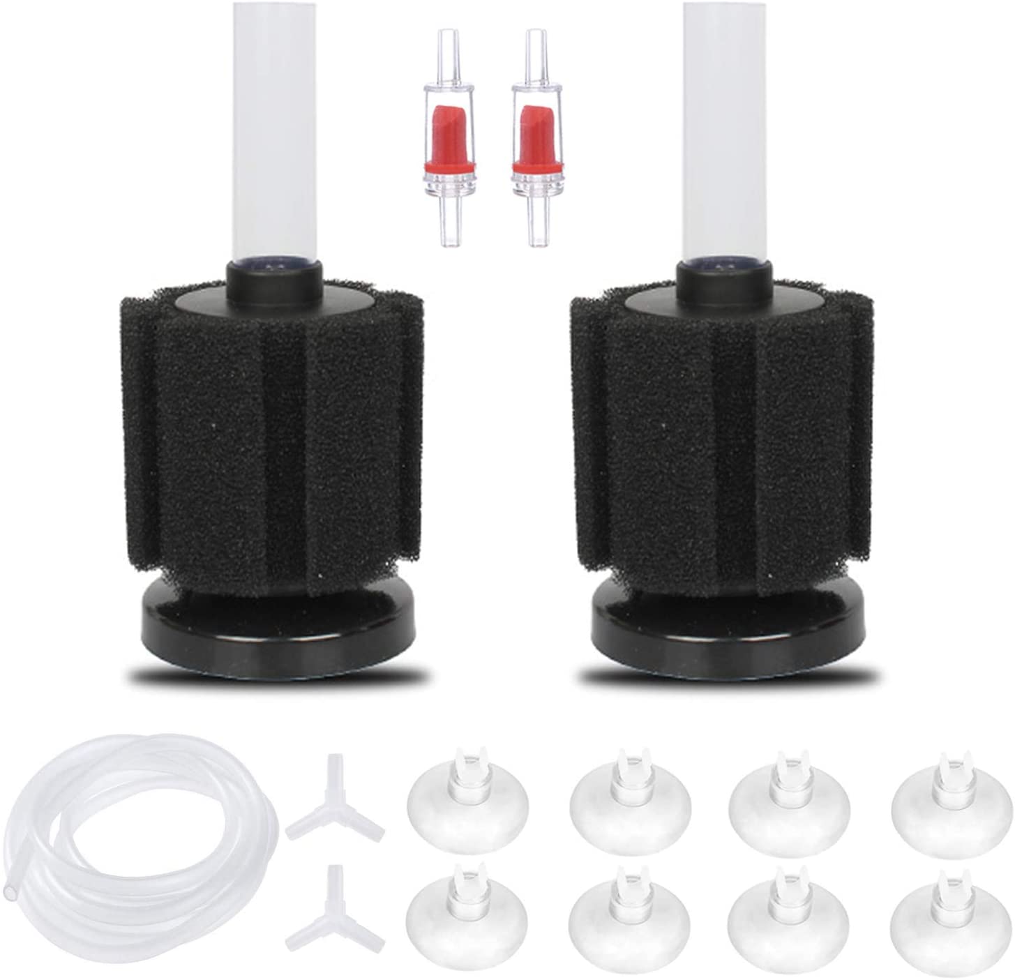 The ALEGI Aquarium Sponge Filter has everything you need to get started, including two sponges, eight feet of air tubing, two non-return check valves, eight suction cups, and a Y-connector.